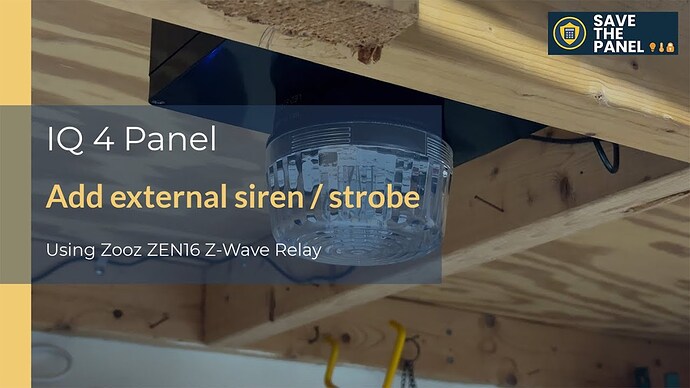 This integration leverages a Zooz ZEN16 relay to connect a 12v Seco-Larm Stobe with integrated siren to an IQ 4 Panel via z-wave. The documentation here provides the connectivity and setup details. For a full discussion of the reasons why, use cases, and other great tidbits, be sure to watch the accompanying video on our YouTube channel: